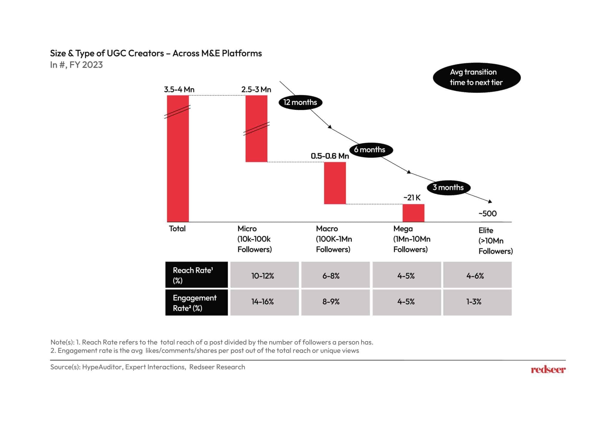 The platforms host four influencer categories starting from the Micro influencer who slowly but surely builds up a follower base of 10k-100k, and levels up to the Macro (100k-1Mn), Mega (1Mn – 10Mn) and Elite (> 10Mn) influencer pools. Virality occurs when original content accompanied by the appropriate tags fetches influencers more visibility and engagement among the audiences. As influencers move up the ranks, optimizing content for reach and engagement becomes a collaborative responsibility with the platforms.