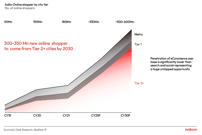The growth in product Commerce user base is expected to be faster than search and social media platforms. We will see an additional 300 to 350 million new online shoppers, of which 90% will come from Tier 2 and beyond cities. Not only will this redefine how consumers purchase and sell, but it will create new opportunities for brands to reach out to their target consumers in an effective way through e commerce platforms