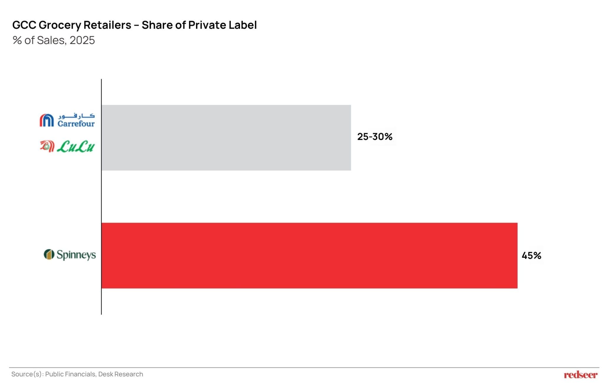 In May 2024, we published The Power Shift: From Brand to Retailer, exploring how GCC grocery retailers were building private labels into margin engines. Since then, the numbers have moved further. Private labels now make up more than 25% of sales for the region’s large grocery chains, including Lulu, Spinneys, and Carrefour.