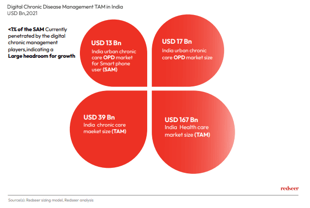 Through Total Healthcare Integration, players are able to reimagine India’s healthcare and help patients navigate their healthcare journey with ease. There is no doubt that this is the future of Indian healthcare, and it seems to be starting from the category of chronic diseases. These players have a long way to go, as they are serving a large $13 Bn urban chronic care OPD opportunity among India’s smartphone users and currently penetrate less than ~1% of it.