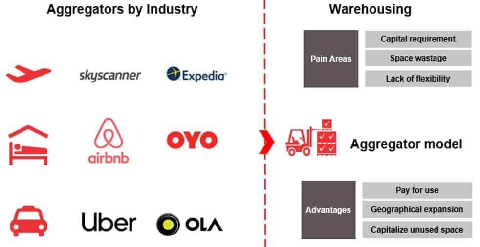 The aggregator model championed by Uber and Airbnb is gradually being adopted in the warehousing industry. In this model, the locations of warehouses are agnostic, and an online platform is provided that lists all the warehouses in varying locations. Retailers and distributors can conveniently select a warehouse depending on their requirements.