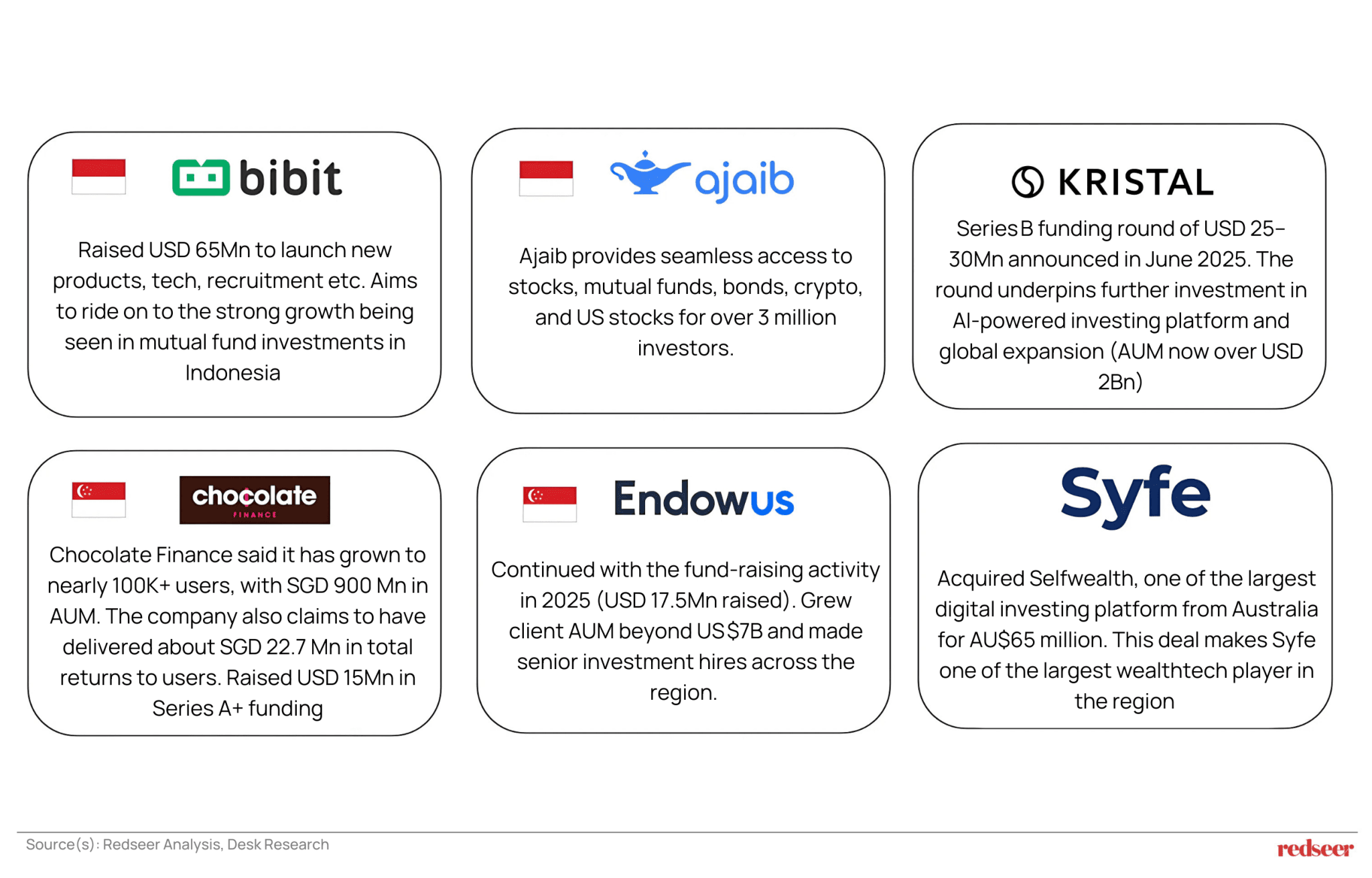 Southeast Asia’s Wealth tech sector is no longer just an emerging story; it’s entering a phase of strategic maturation. With a growing mass affluent class, deepening digital penetration, regulatory shifts, and an upswing in capital markets across countries, the region is now home to a handful of serious contenders shaping the future of investing. From Syfe’s USD 80Mn raise to Pluang’s regional expansion, momentum is building, but so are the questions around profitability, differentiation, and scale. In this edition, we unpack the region’s market size, spotlight key players, decode global signals, and share on-the-ground insights that matter for investors, founders, and incumbents alike.