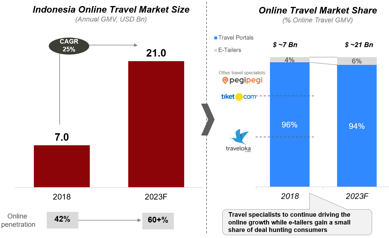 - Out of the USD 18 Bn overall travel market in Indonesia, USD 7 bn is already online