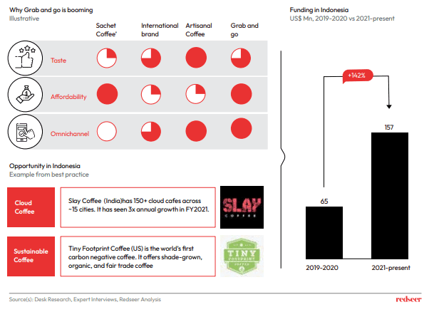 Overall, coffee-loving Indonesia is witnessing a shift in consumer preferences. Due to multiple factors such as affordability, easy access and greater online presence, new-age coffee chains have not only come out of the pandemic relatively better than traditional players but are also continuing to get a huge push from consumers and investors alike.