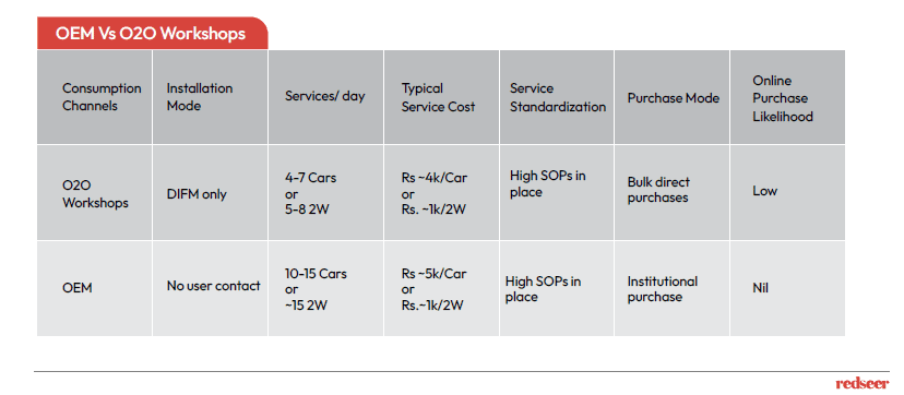 Some of the key O2O platforms in the market are GoMechanic, VehicleCare, Automovilla and myTVS. Consumers can use these platforms to discover workshop service online and get their vehicle serviced at offline partner workshops, with scheduled and doorstep service as required.