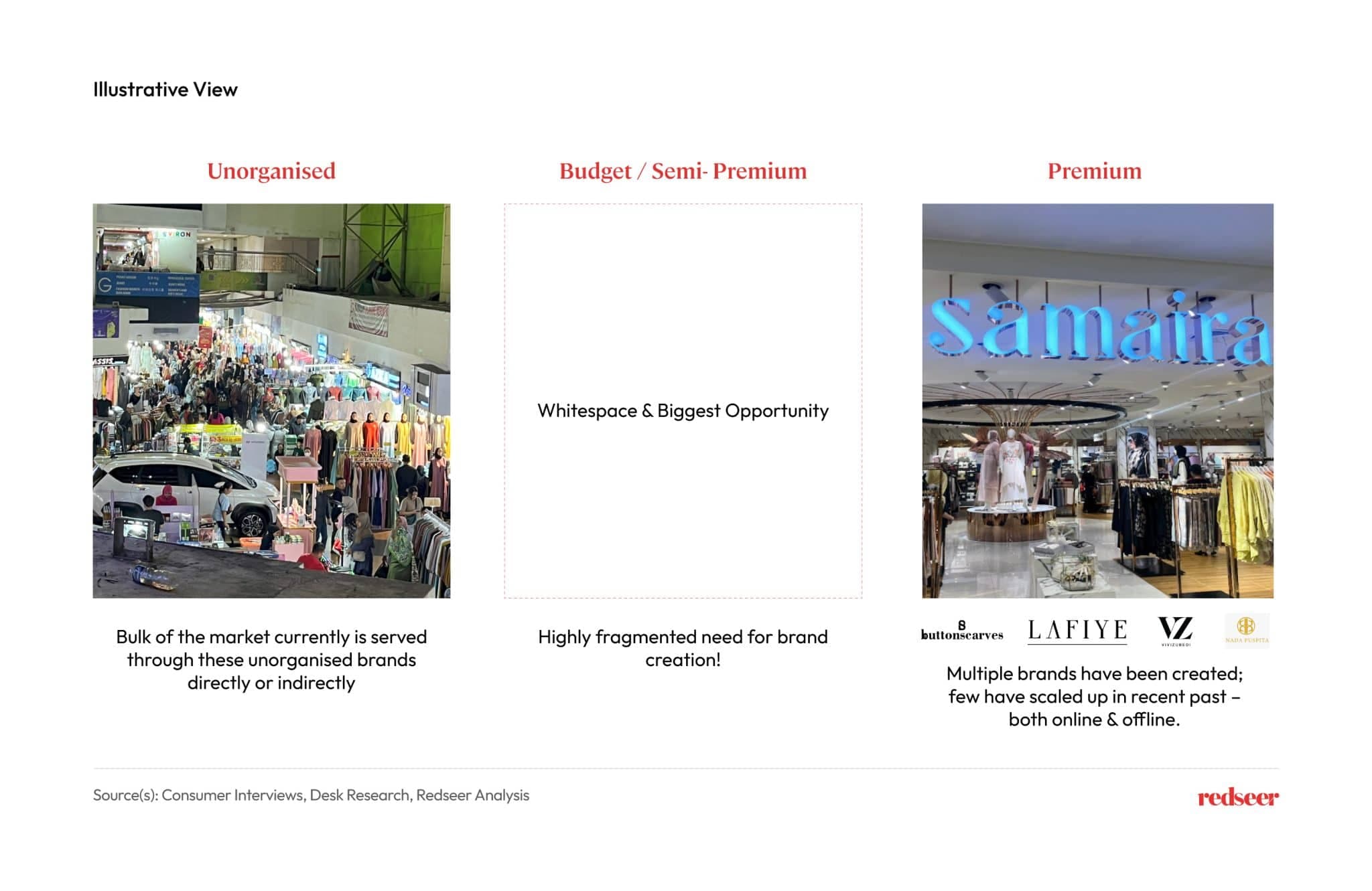 4. Lay of the land: 1. Highly fragmented, 2. Few brands have scaled recently (limited to premium); 3. The bulk of the market is budget & semi-premium – the need for brand creation